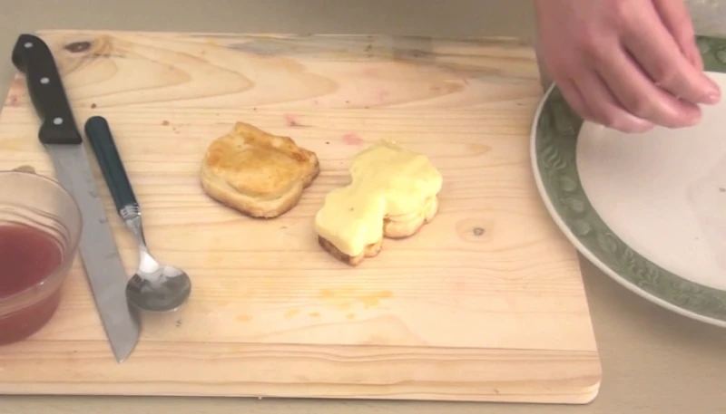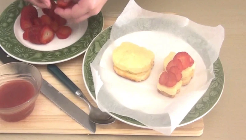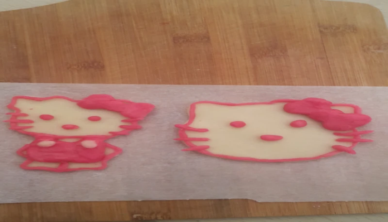 Pour la crème pâtissier remplir les emporte-pièce pour avoir la forme hello Ketty puis les conservé au frigo.