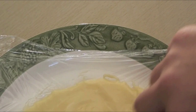 - Étalez une partie du chocolat blanc sur une assiette filmée, puis conservez cela au frigo.