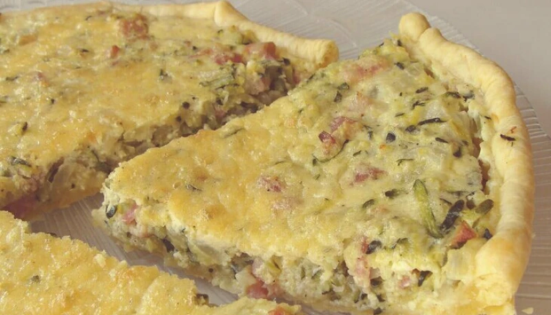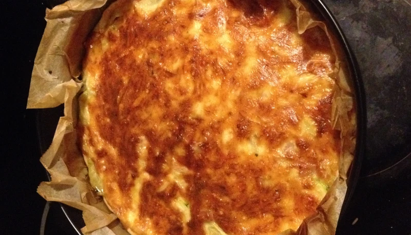 Verser le mélange lardon courgettes oignons sur la pâte et couvrir de la mixture oeuf crème.