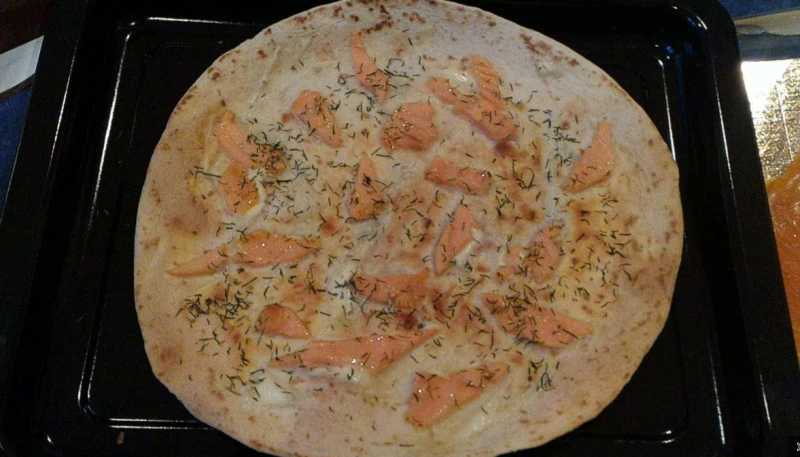 - Étaler de la crème fraiche sur le wrap