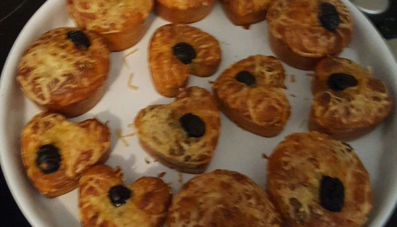 Versez la pâte dans les moules, nappez de sauce tomate et saupoudrez du reste d’emmental.