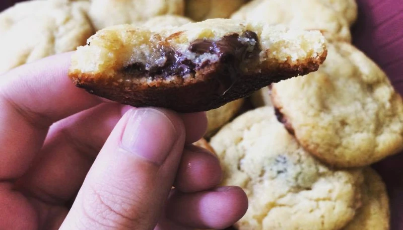 Si vous travaillez avec des pépites, incorporez les maintenant, en revanche, si vous travaillez avec une tablette, je vous conseille de couper chaque carré en deux afin de mettre les morceaux au cœur de chaque boule de cookies.