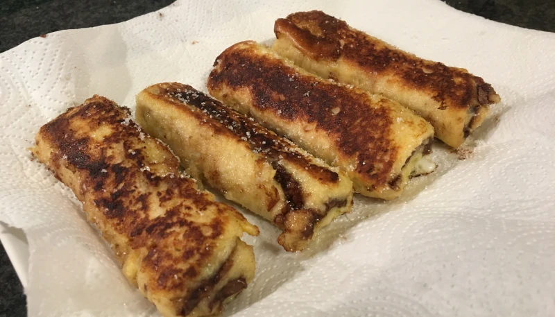 - Trempez vos roulés dans le bol et déposez les sur votre poêle et laissez dorer à votre guise.