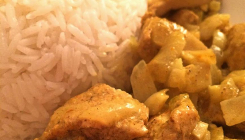 Une fois les dés de poulet bien colorés, ajouter le lait de coco ( plus ou moins selon le gout) et la crême fraiche.