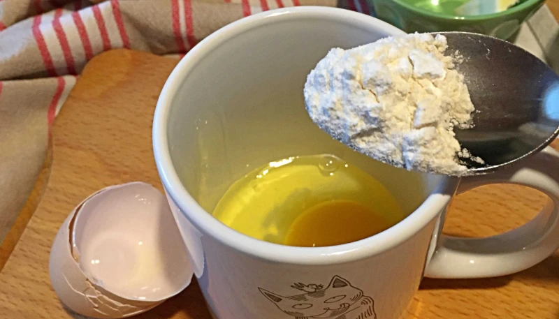 Mélanger l'oeuf avec la farine , la levure , une pincée de sel et de poivre pour assaisonner.
