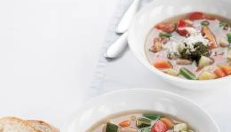 Répartir la soupe dans quatre bols. Garnir de saucisses, de pesto et de parmesan.