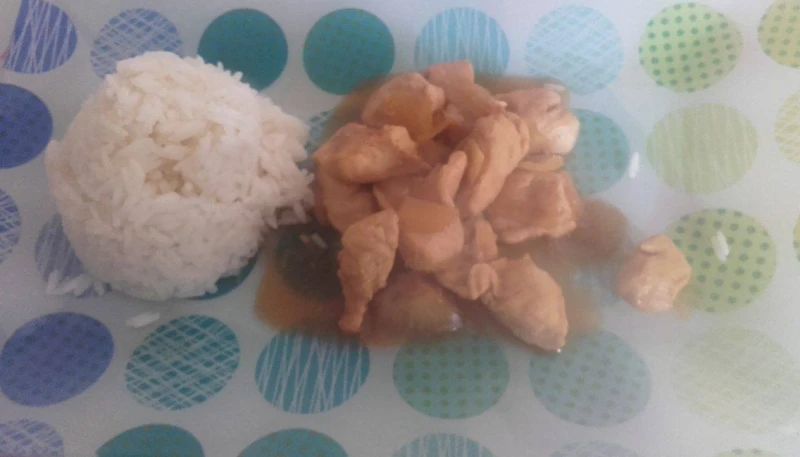 1-Coupé l'oignon, l'ail et les escalopes de poulet