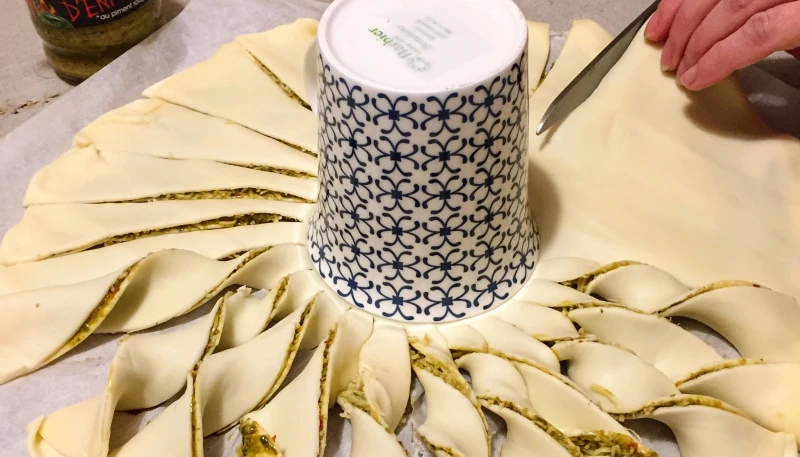 Au centre, posez une tasse afin de déterminer la limite des lamelles à couper.