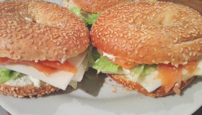 Une fois croustillant tartiner le fromage sur les 2 côtés du baggels. Poser des tranches de saumon et mettez quelque gouttes de citron par dessus. Enchaînez avec la salade et autre garniture de votre choix (tomate, autre fromage, etc)