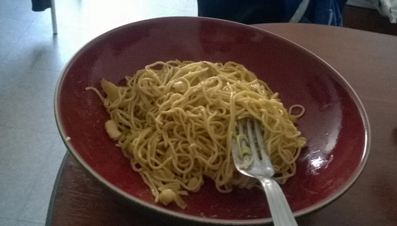 -Puis rajouter les nouilles, éteindre le feu mélanger et laisser chauffer quelques petites minutes.