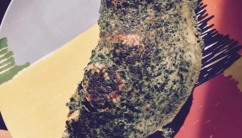 Dans le bol, ajouter aux épinards un oeuf et les morceaux de saucisse, sel et poivre.