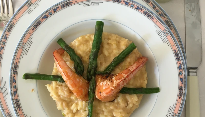3. Dans un petit pot ou directement sur le risotto, rajouter la crème d'asperges.