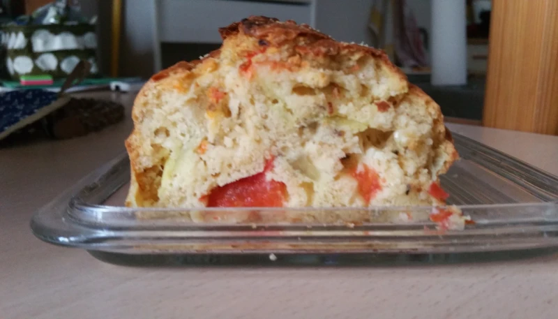 Ensuite, coupez les tomates et les oignons selon vos habitudes, de manière à ce que les morceaux soient assez petits pour bien s'incorporer au cake