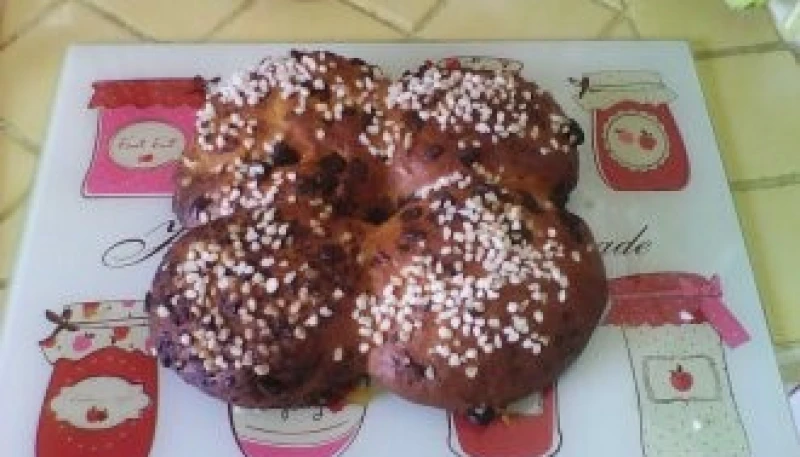 - Pétrissez à nouveau 1 min et façonnez, mettre les pépites de chocolat et mettre la pâte dans le moule beurré ou sur une plaque de cuisson couvert d'un papier cuisson