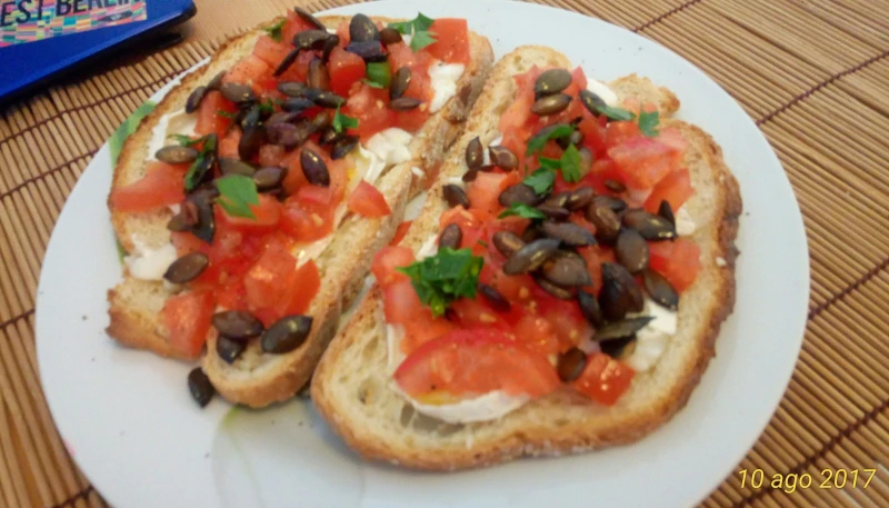 Faites griller les tranches de pain au four quelques minutes, juste assez longtemps pour pouvoir ensuite les frotter avec l'ail.