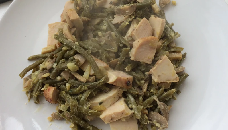 5- Ajouter la sauce aux légumes, puis les dés de poulet; couvrir pendant 5/10 minutes.
