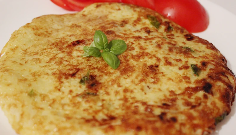 _Faîtes chauffer un peu d'huile d'olive dans une poêle, à feu vif. Versez la préparation dedans, et étalez la avec le dos d'une cuillère à soupe pour qu'elle ait bien la même épaisseur partout. Baissez un peu le feu.