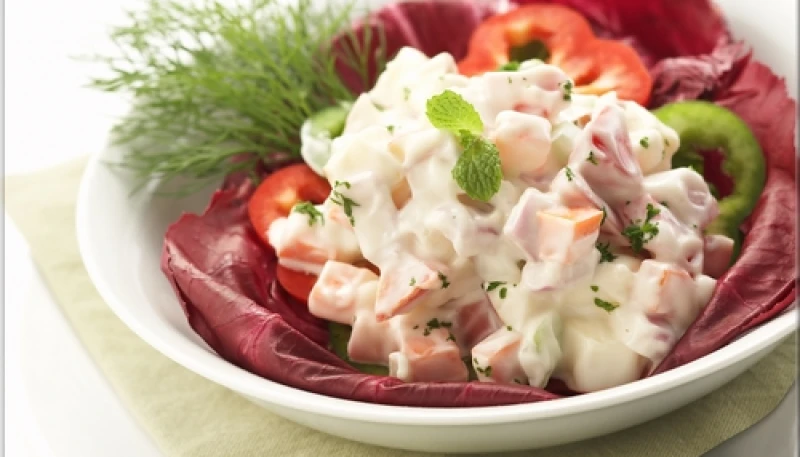 Mélanger et laisser au réfrigérateur pour que les pommes de terre s'imprègnent de sauce.