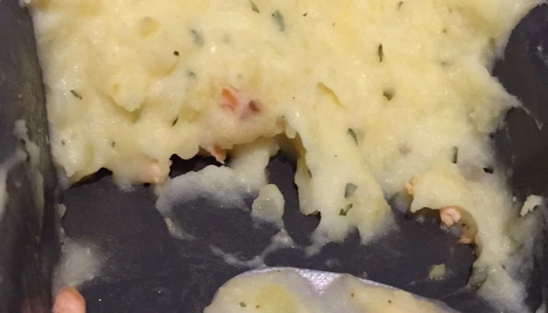 4. Dans un plat, répartissez les morceaux de saumon. Parsemez d'échalote et recouvrez avec la purée.