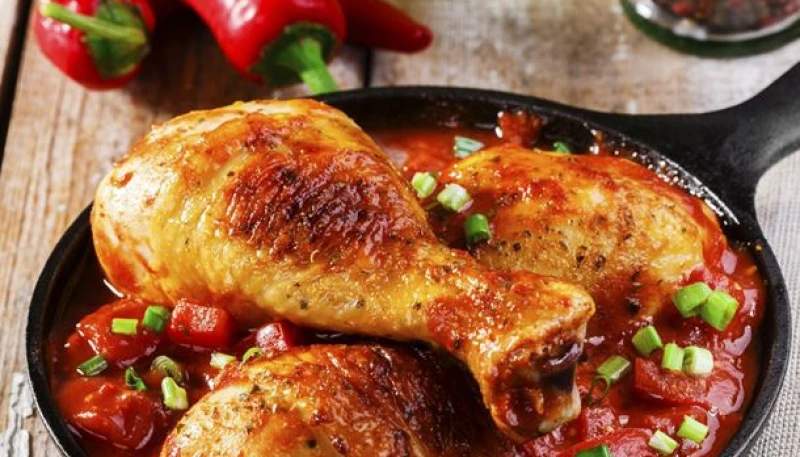 Lavez soigneusement les cuisses de poulet ainsi que les poivrons et les tomates.
