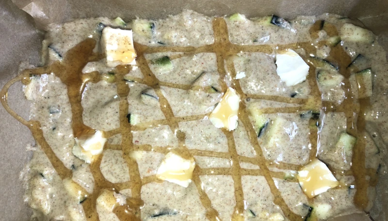 - Ajoutez le miel sur la préparation ( déjà versée dans le moule)