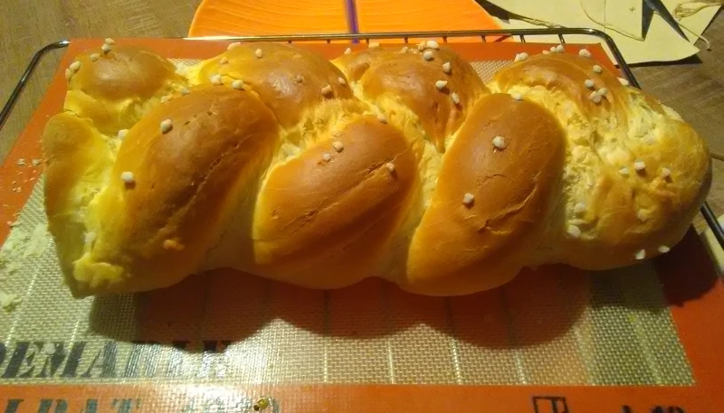 Puis séparer chaques pâtons en 3 pour tresser les brioches toujours sur le plan fariné.