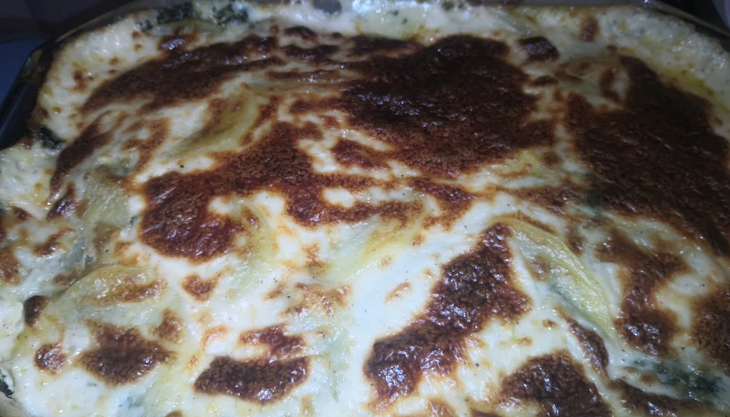 Disposez dans un plat à gratin, disposer une couche de pommes de terre puis une couche épinard et Ricotta