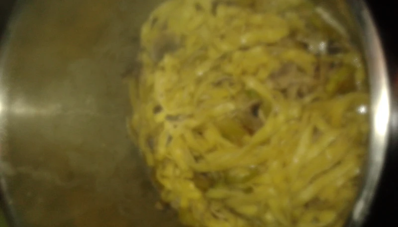 Pendant ce temps là faire chauffer une poele et verser un peu d'huile d'olives. Une fois l'huile d'olive chaude verser les champignons et attendre que les champignons soient presque cuits pour verser les bandes de courgettes. Attendre 1-2min puis verser la crème liquide sur le mélange, saler, poivrer, puis laisser réduire la crème pendant 1-2min.
