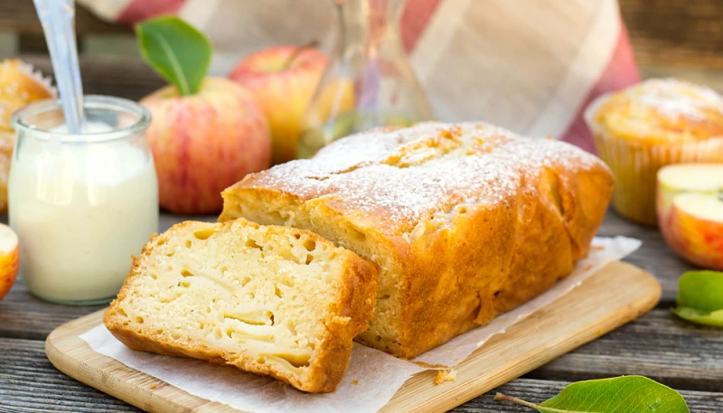 Dans un saladier, mélangez le yaourt, l’huile, la farine, la levure, le sucre et les oeufs en utilisant le pot vide du yaourt pour mesurer les autres ingrédients. Mélangez pour obtenir une pâte lisse. Ajoutez ensuite les dés de pomme à la pâte et mélangez à la spatule.