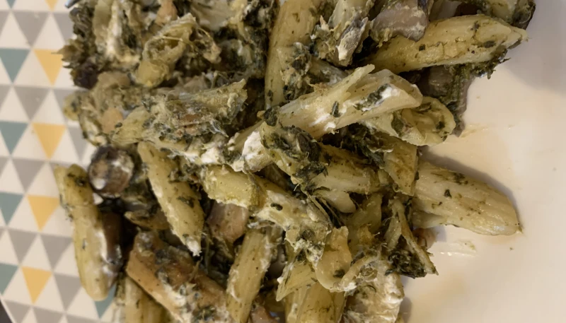 Dans la poêle, ajouter les épinards et les pâtes une fois cuitent.