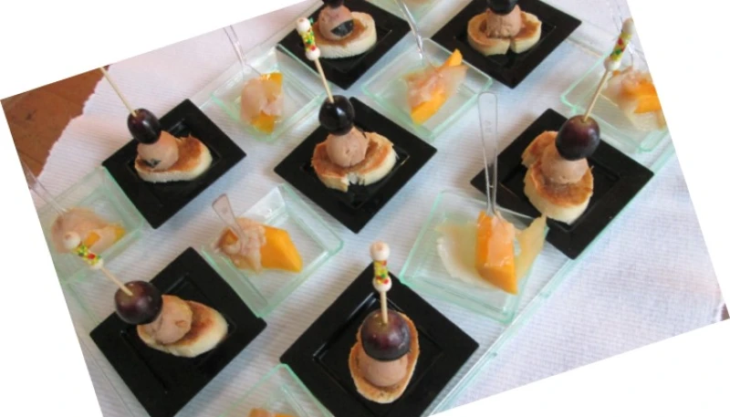 Piquer une jolie mini brochette dans un grain de raisin noir et les installer sur les toasts de pâté.