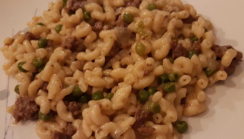 Couper l'oignon en petits morceaux et le faire revenir dans la poêle, une fois coloré, ajouter les steak hachés que vous aurez réduit en petit morceau ou prendre de la viande hachée.