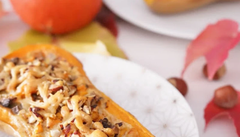 Lavez bien la courge butternut sous l'eau. Coupez la en deux puis enlevez les graines. A l'aide d'une cuillère à soupe enlevez un peu de chair de la courge pour pouvoir la farcir.