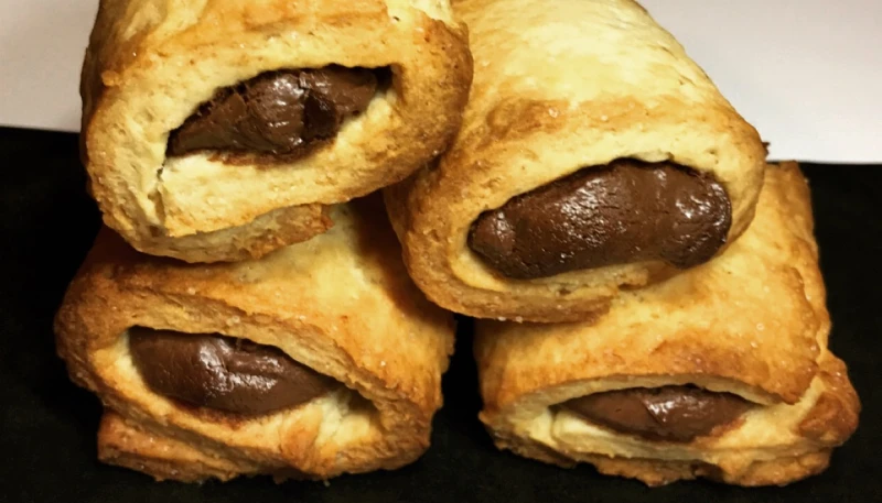 Déposez une cuillère de Nutella au milieu de chaque rectangle et rabattre les deux côtés dessus