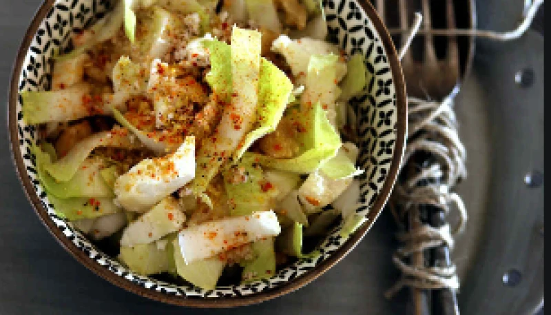 • Mélanger le tofu et la salade, verser la sauce et remuer