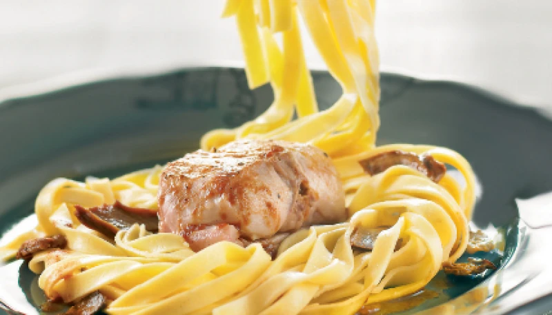 6. Présentez les pâtes et les râbles en les nappant de sauce et parsemez de romarin émietté.