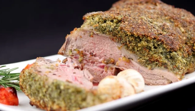 • Étaler la pâte obtenue sur toutes les faces du carré d’agneau et le recouvrir d’une feuille de papier sulfurisé pour éviter que la croûte de pain d’épice au chocolat ne colore trop.