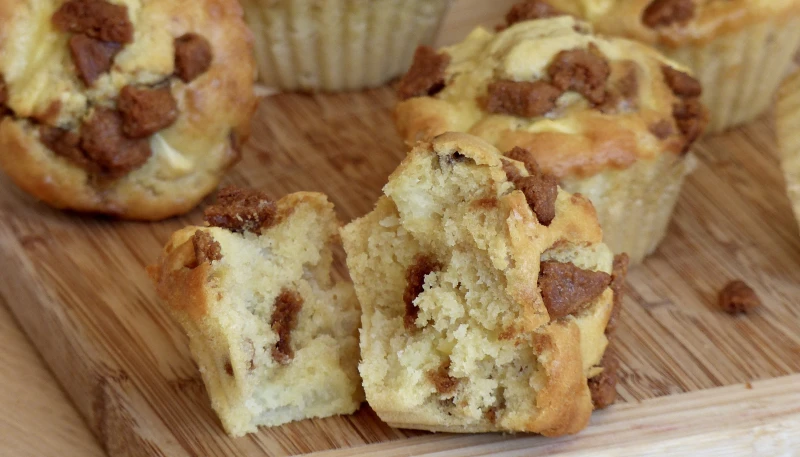 5. Versez dans des moules à muffins en les remplissant au 3/4 puis parsemez du reste de spéculoos.