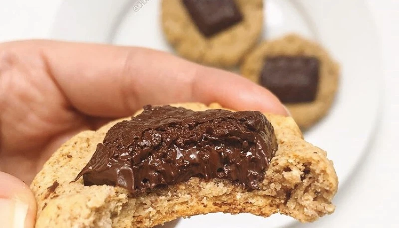 5. Placer un carré de chocolat au centre de chaque biscuit et enfoncer afin qu’il soit bien entré dans le biscuit.
