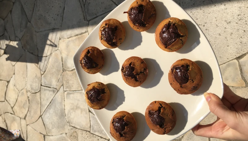 Remplir les moules à la moitié et ajouter sur le dessus une cuillère à soupe de Nutella.