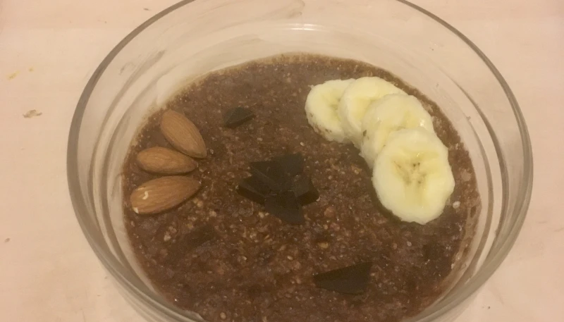 P.S : Ajoutez ce que vous voulez pour le topping, moi j'ai mis de la banane et des amandes mais c'est plus pour la présentation que le goût aha