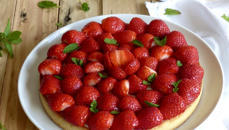 2. Lavez et coupez vos fraises en 2 puis disposez les sur la crème selon votre envie.