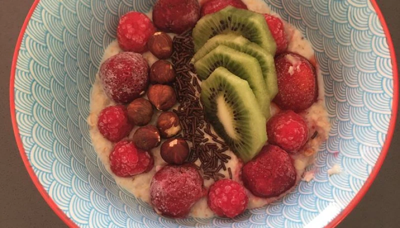 Versez dans un bol et décorer avec ce que vous aimez et ce que vous avez ! la banane s'y prête parfaitement, de la noix de coco rapée, des amandes, des baies de goji, du muesli, tous les fruits de saison, etc......