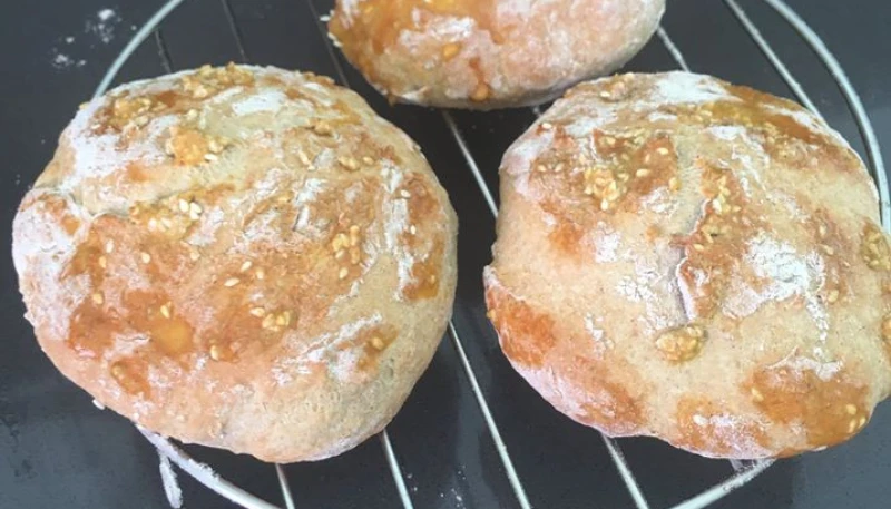 Former les petits pains sur une plaque recouverte de papier cuisson puis les badigeonner du jaune d'œuf. Saupoudrer de graines de sésame.