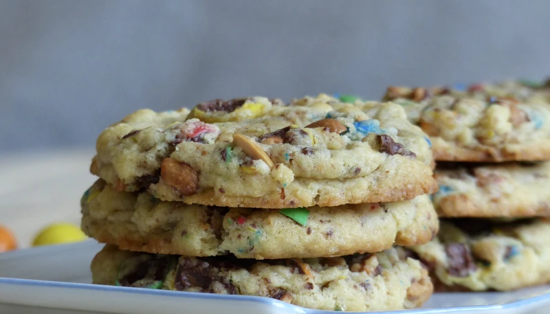 4. Concassez les M&M’s en les déposant dans un sac congélation puis en tapant avec votre rouleau à pâtisserie (oui oui ça fait du bruit mais c’est efficace 😃). Ajoutez-les ensuite à la préparation et mélangez.