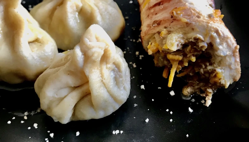 - étalez le veau et ajoutez la moitié des carottes et des champignons hachés