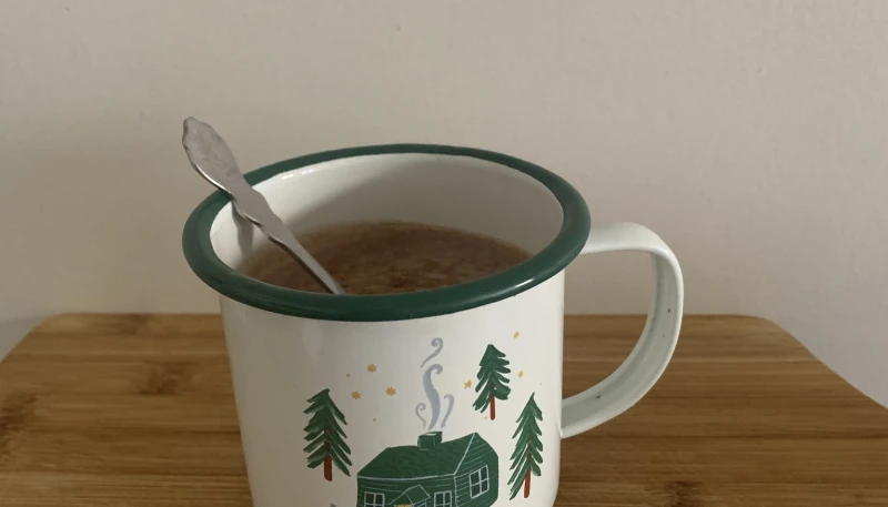 3. Versez dans une grande tasse ou un grand verre, saupoudrez d'une pincée de cannelle et dégustez bien frais au petit-déjeuner ou au goûter.