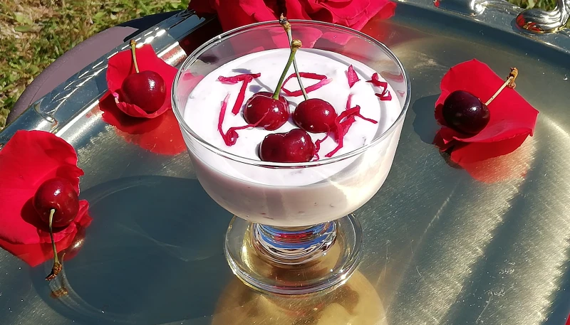 Coucou les amis, j'espère que tout le monde va bien, aujourd'hui je partage avec vous une recette de dessert à la rose et à la cerise.