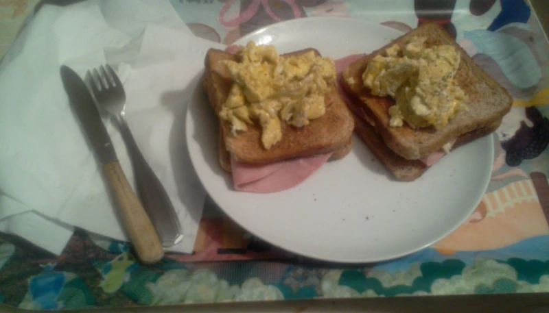 Disposer 4 tranches de pain et garnir chacune d'elles d'une tranche de gruyère, puis d'une tranche de jambon et à nouveau d'une tranche de gruyère.Couvrer avec les autres tranches de pain
