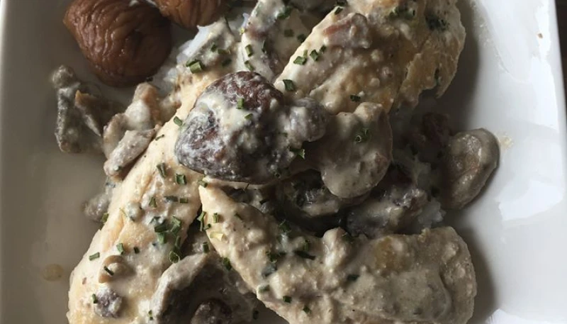 J'avais prévu de faire des aiguillettes de poulet avec des champignons pour ce midi donc je vais ajouter ces châtaignes à mon plat.